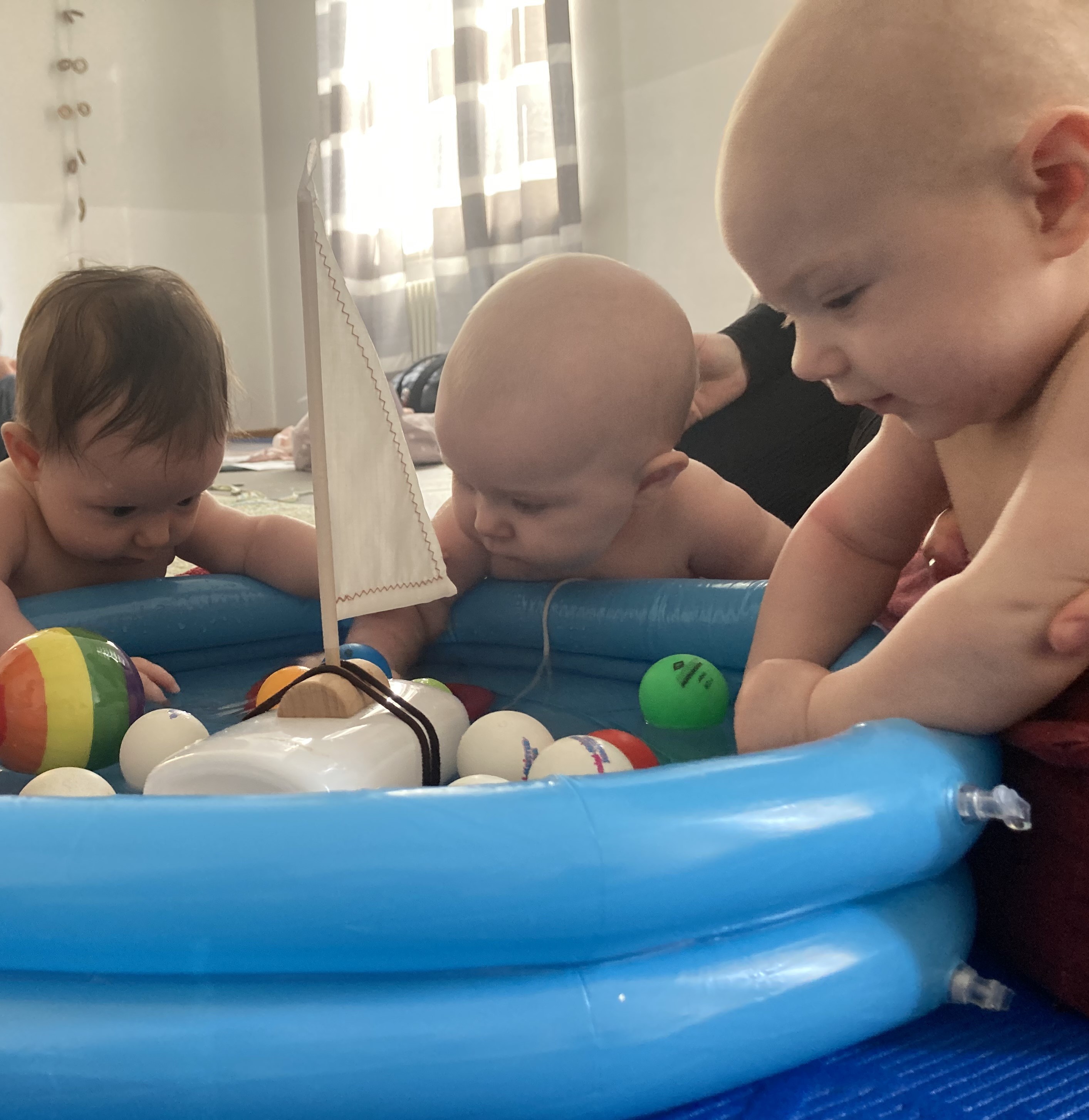Ihr verbringt eine exklusiv zugewandte Zeit mit Eurem Baby und macht ihm gezielte Angebote, auch mit Hilfe vorbereiteter Materialien, Liedern, Reimen und angeleiteter Massage.